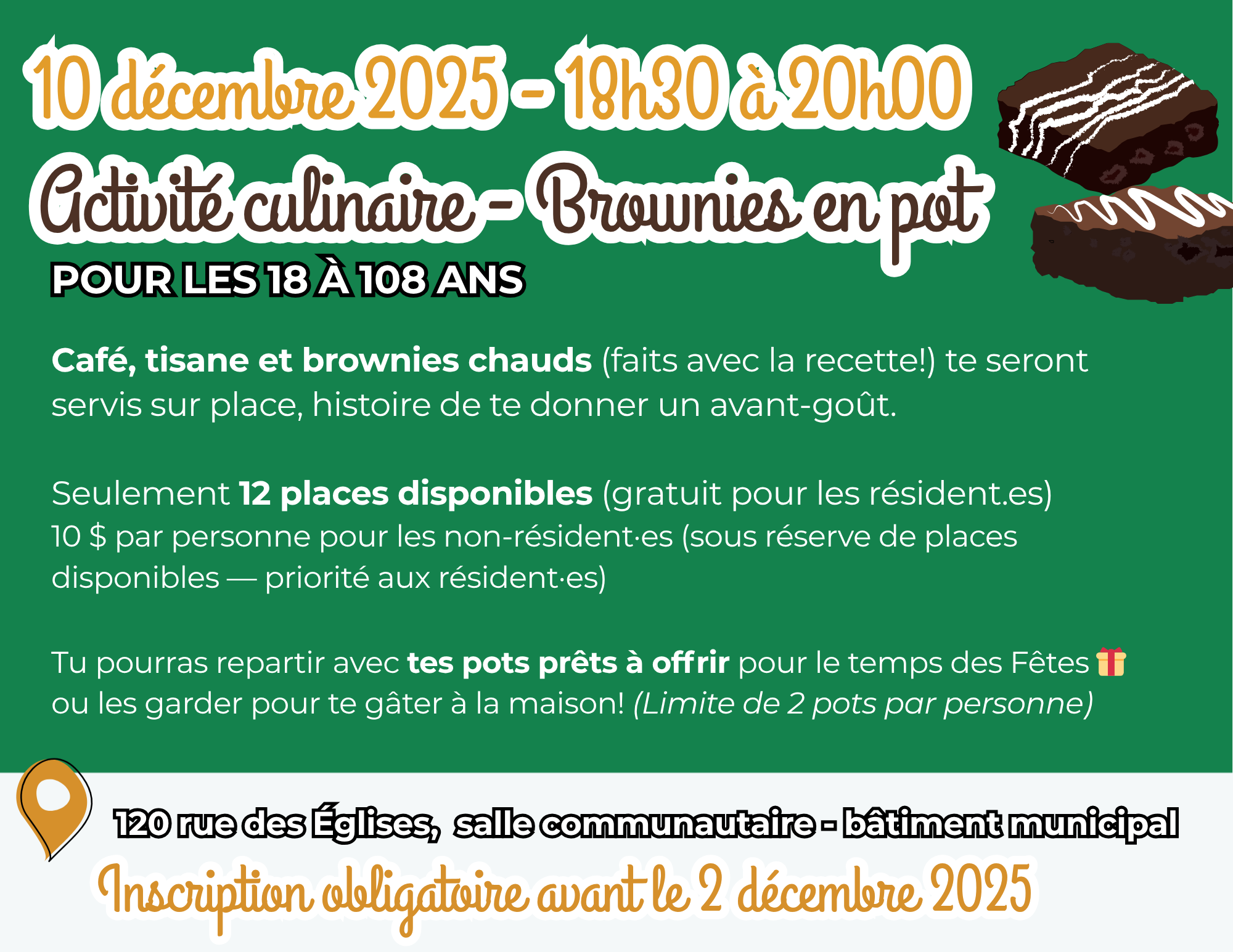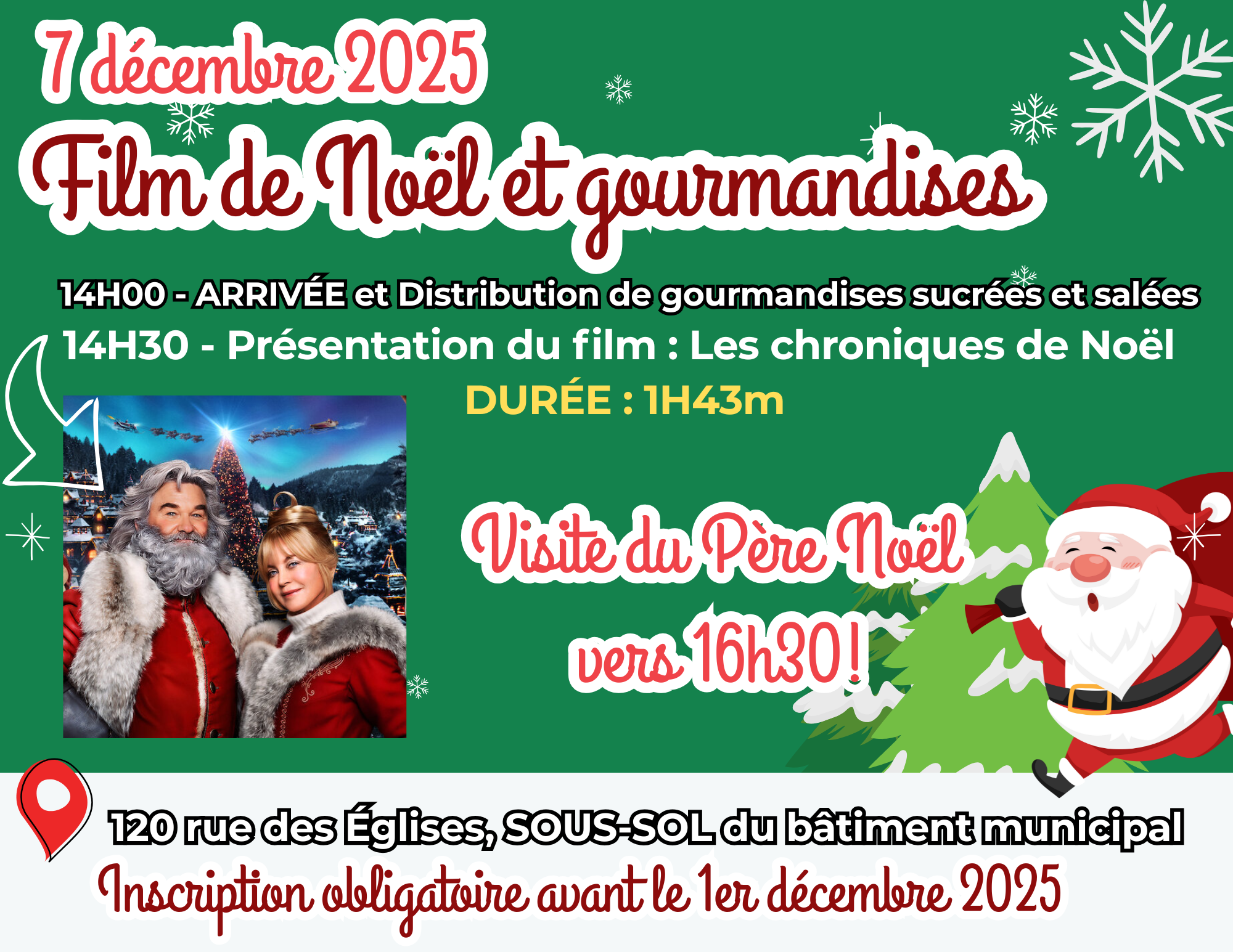 Inscription pour l'activité culinaire : ICI Inscription pour le film de Noël : ICI