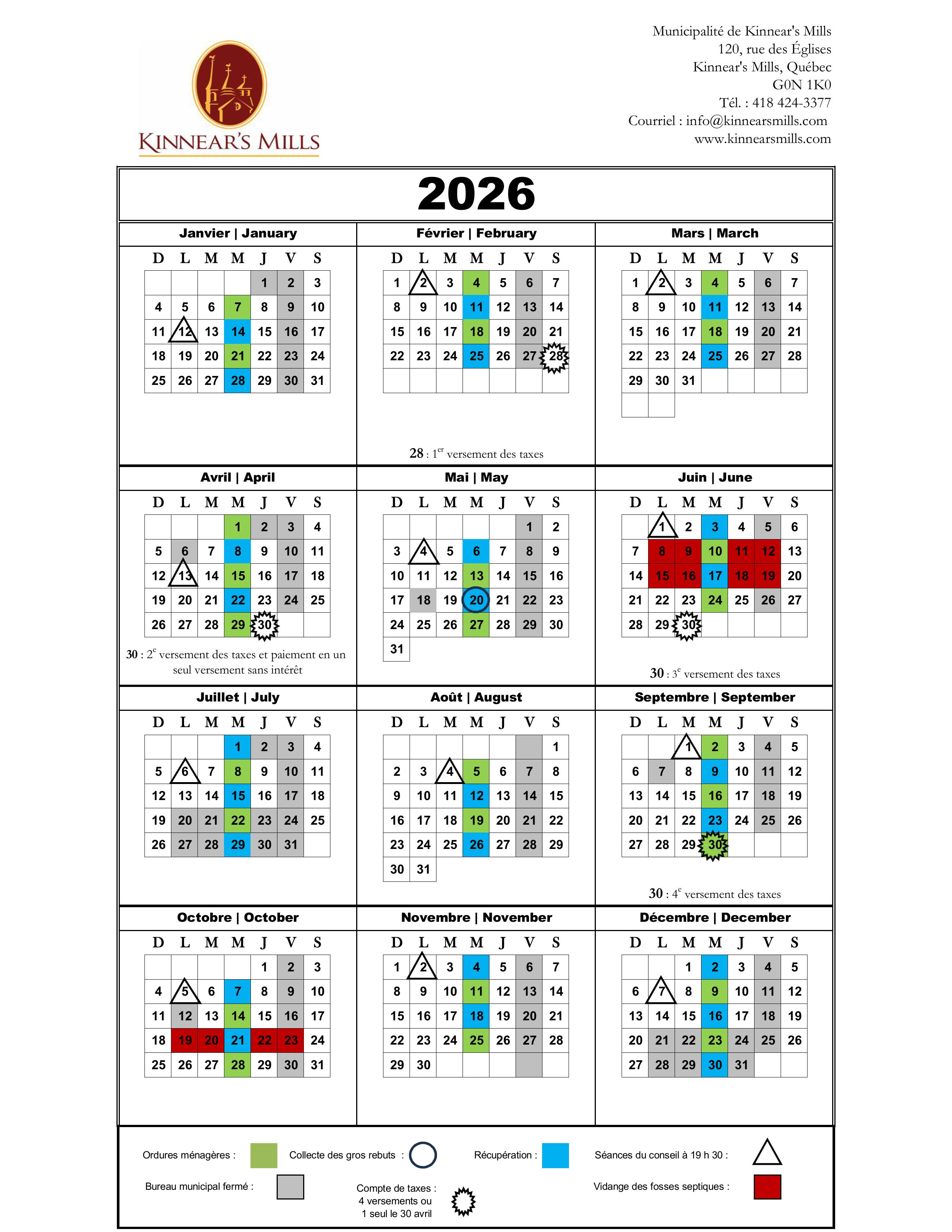Dans le but de centraliser les demandes, vous devrez dorénavant appeler directement la Municipalité de Kinnear's Mills pour obtenir le service de vidange des fosses septiques.